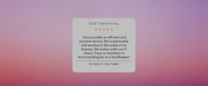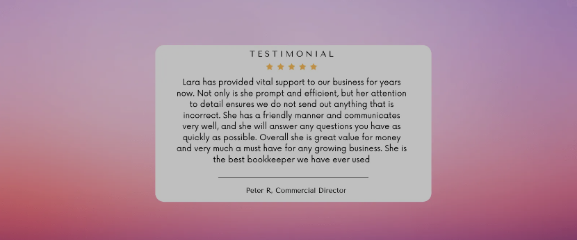 If you would like your books to be managed by an award winning and knowledgeable bookkeeper who can help you get the best out of your business then book a discovery call with Lara.