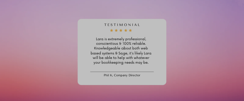Lara has recently transformed LJM Bookkeeping to a Limited Company and her dedication to bookkeeping is reflected in the feedback she receives from her clients.